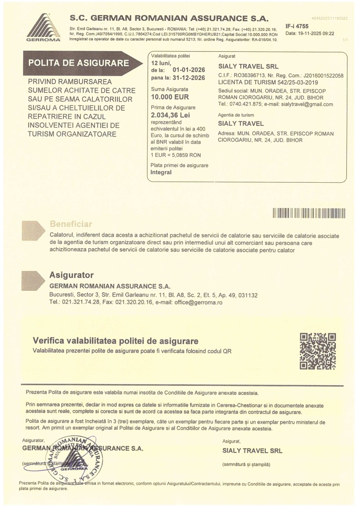 Te așteptăm să ne scrii la adresa: sialytravel@gmail.com sau să ne contactezi la numărul de telefon 00 ( 40 ) 753 376 526 – Zamfir Alina Simona.